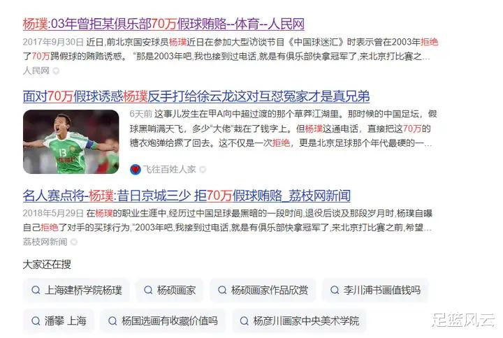 对了, 有件事也要说一下,在杨璞身上有件美谈,就是他曾拒绝70万踢假球,这也看出了他的清正,踢球的人品值得称道。