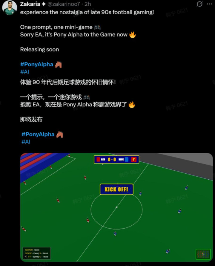 还有东说念主让它一个辅导词作念出了一款90年代因循立场的足球小游戏,完成度高到令东说念主怀疑东说念主生。