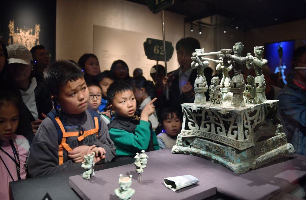 4月3日,小一又友在三星堆博物馆不雅看展品。新华社记者 卢哲 摄
