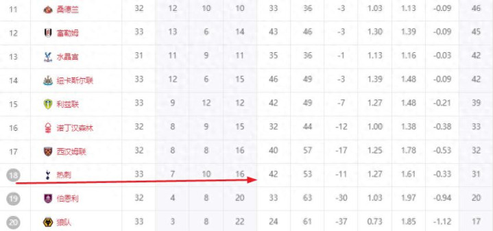然后由于分神欧冠,热刺在联赛中发达欠安,在第33轮前,热刺真的照旧怒放14轮不堪,排行从积分榜前哨一齐下滑至保级区隔壁。在第32轮中,热刺客场0-1输给桑德兰,而西汉姆联4-0礼服狼队,西汉姆联积32分,多了热刺2分,一举反超热刺,升上倒数第4,而热刺积30分排行倒数第3,跌至左迁区。