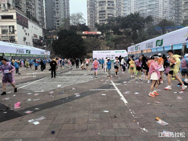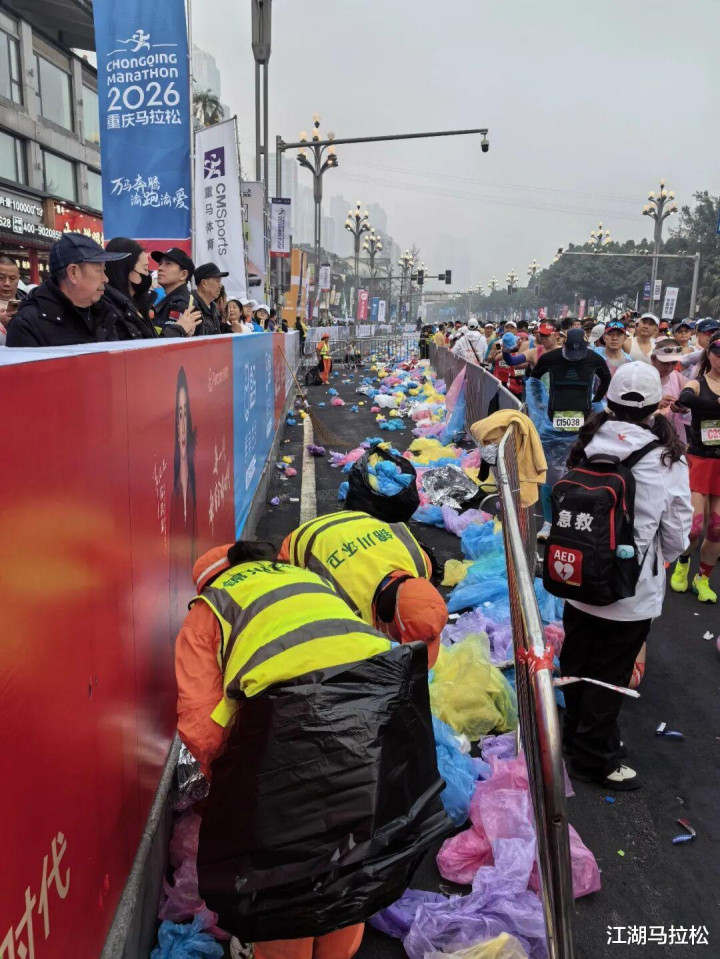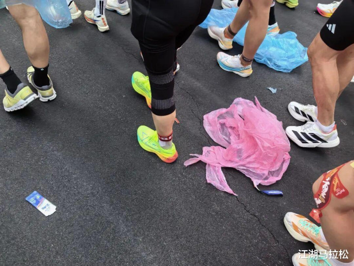 起跑时乱丢一次性雨衣、保温毯,就是个普遍恶习。去年以来,已有多场赛事赛前不发一次性雨衣了,可是出发时,脚底下依然一堆。其实大多数参赛者都扔到垃圾箱了,有的不方便,也起码扔到集结区外了,只是一小部分人,往地上一扔,争分夺秒地往前跑。