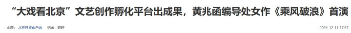 北京客户端——“大戏看北京”文艺创作孵化平台出抑制,黄兆函编导处女作《乘风破浪》首演