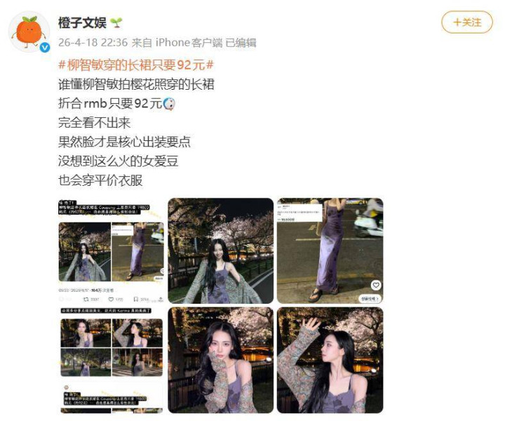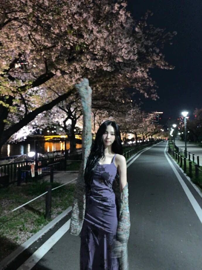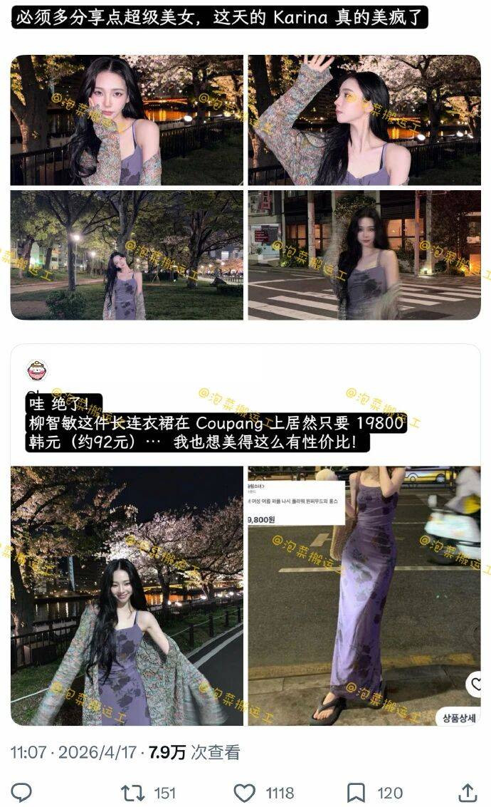 一张樱花写照让aespa成员柳智敏身上的裙子成了焦点。
