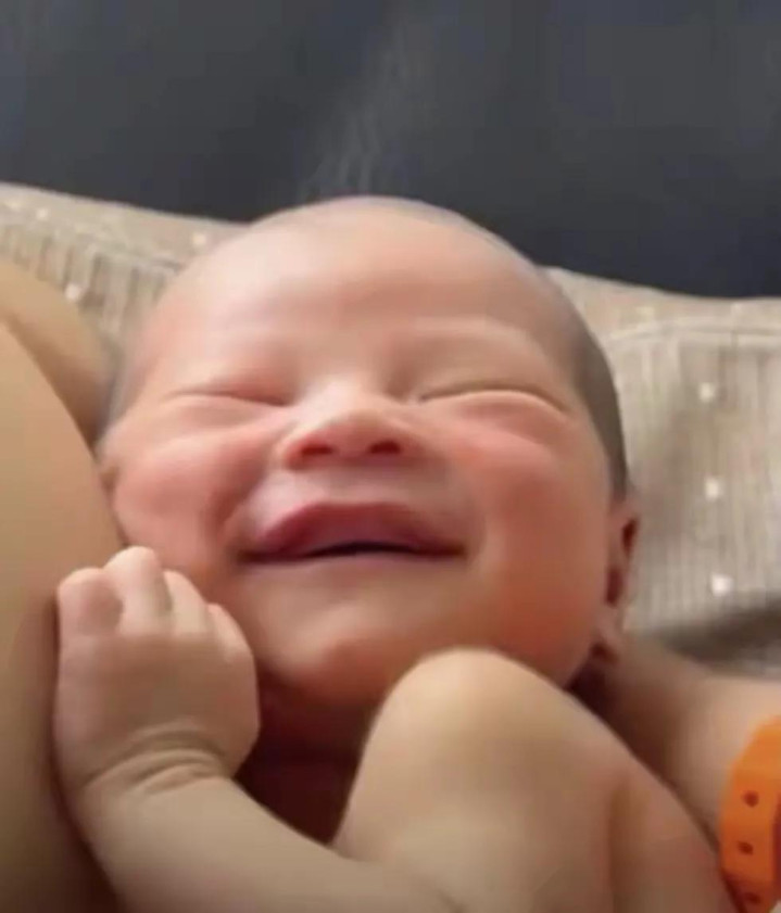 相片中的婴儿,还莫得睁开眼睛,似是梦见了什么快乐愉悦的事情,稚嫩的脸蛋,笑成一朵花。