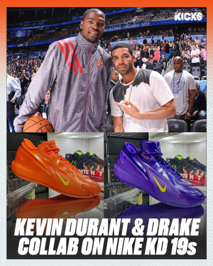 这次采取的模样亦然杜兰特刚刚发布不久的新一代签名鞋KD19,这次联名一共两个配色,a8体育官方网站一紫一橙,鞋舌和鞋带前线皆有Drake本东谈主品牌NOCTA的符号