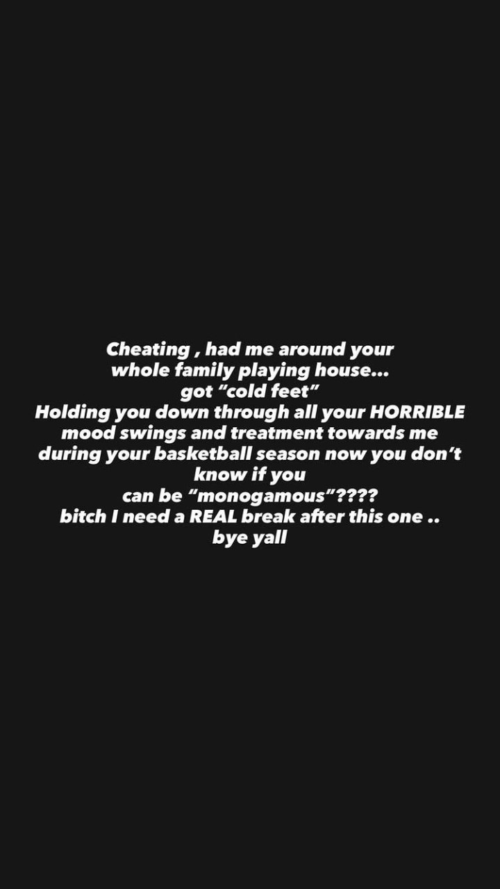 “我作念出了终了与克莱情谊的决定。信任、真心与尊容(Trust, fidelity and respect)在我的情谊中是没得盘考的红线。当这些中枢价值不雅遭到侵害后,我找不到任何走下去的可能。我将先把我方放在第一位,带着坦然与清亮赓续前行。”