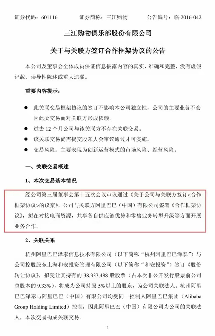 马云在云栖大会上大声疾呼,建议了触动业界的“新零卖”主见。没过多久,阿里就相中了浙江的三江购物,承接拿下32%的股份,成了第二大鼓舞。