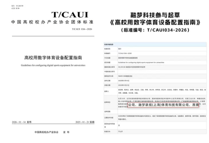 其中,由中国高校校办产业协会发布的《高校用数字体育开采建树指南》(圭臬编号:T/CAUI034-2026),旨在为高校体育法子的数字化、智能化升级提供科学和洽的施行框架。融梦科技基于在数字校园体育鸿沟的弥远深耕与多数本质,为该项圭臬的工夫主见与建树决策孝顺了关节的专科灵敏。