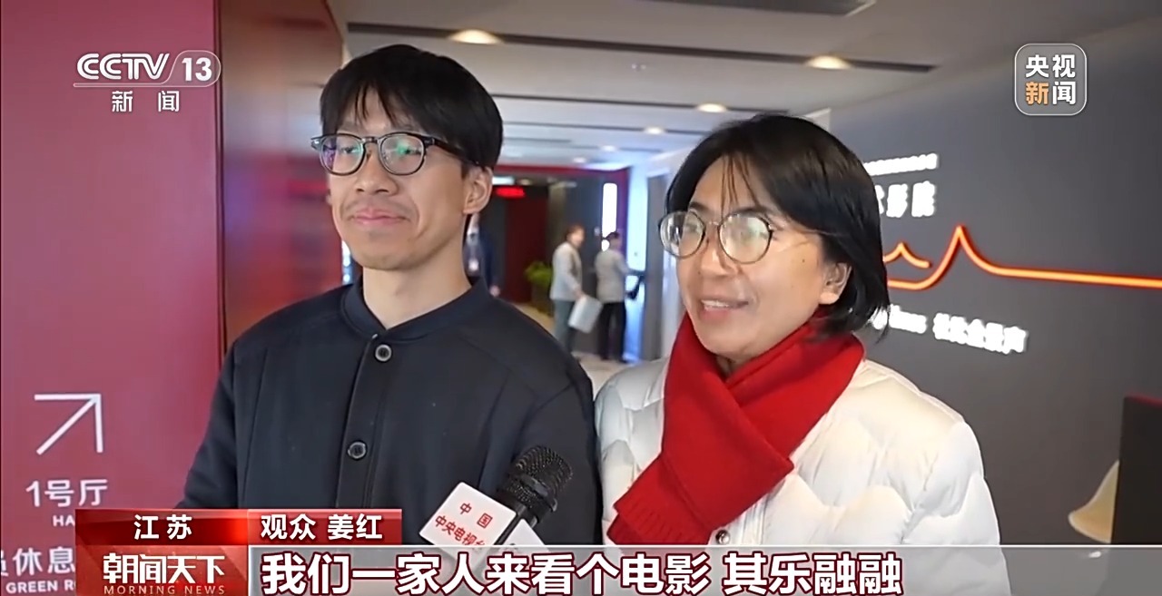 不雅众 姜红:春节即是全家东谈主团圆的一个纽带,那么趁这个纽带在一谈,咱们一家东谈主来看个电影其乐融融。
